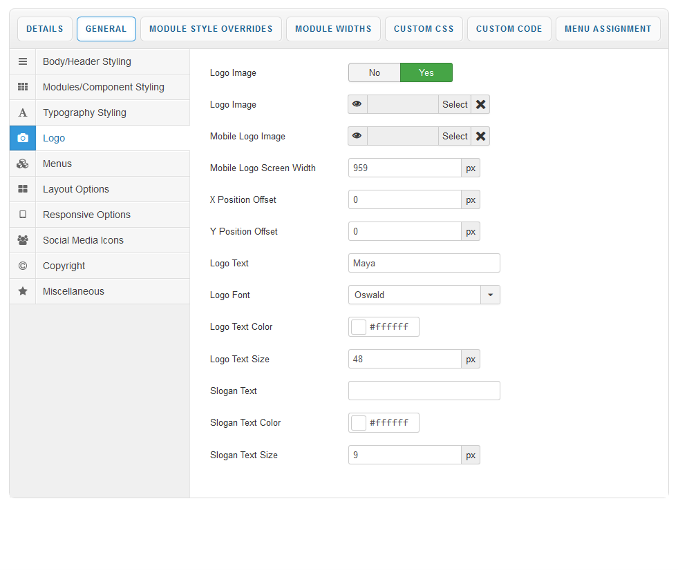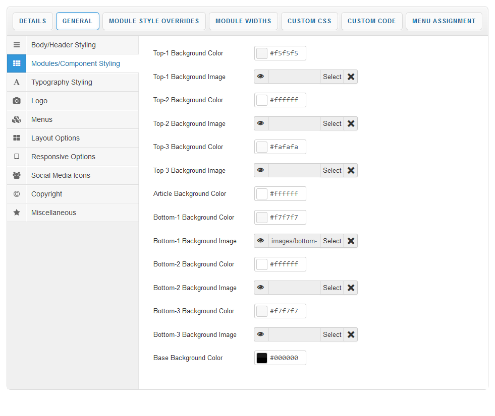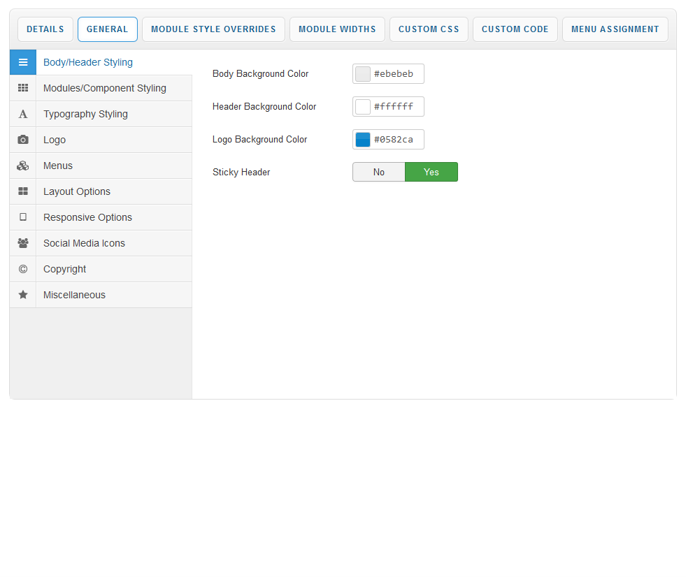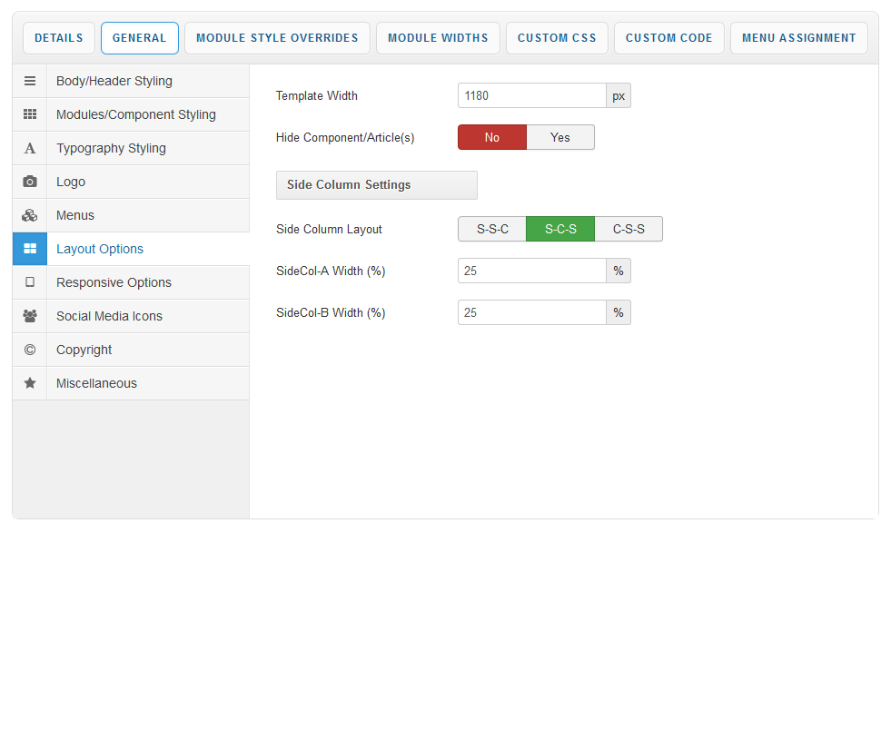 Your template parameters can be access directly from your Template Manager giving you access to a host of features including a selection of template styles, some colour choosers to help customise your template headers and links, a number of layout options and easy to use logo settings.